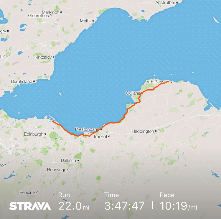 What should have been the homeward stretch, the sight of the "Welcome to Edinburgh" sign at Musselburgh, filled me with a wash of disappointment. There was so far still to go and we were both flagging. Massively.